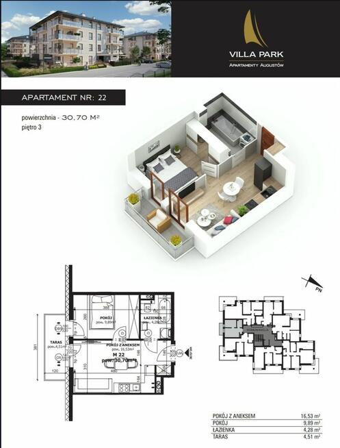 Na sprzedaż mieszkanie w stanie deweloperskim o powierzchni 31 m², położone na 3 piętrze w nowej inwestycji Villa Park ...